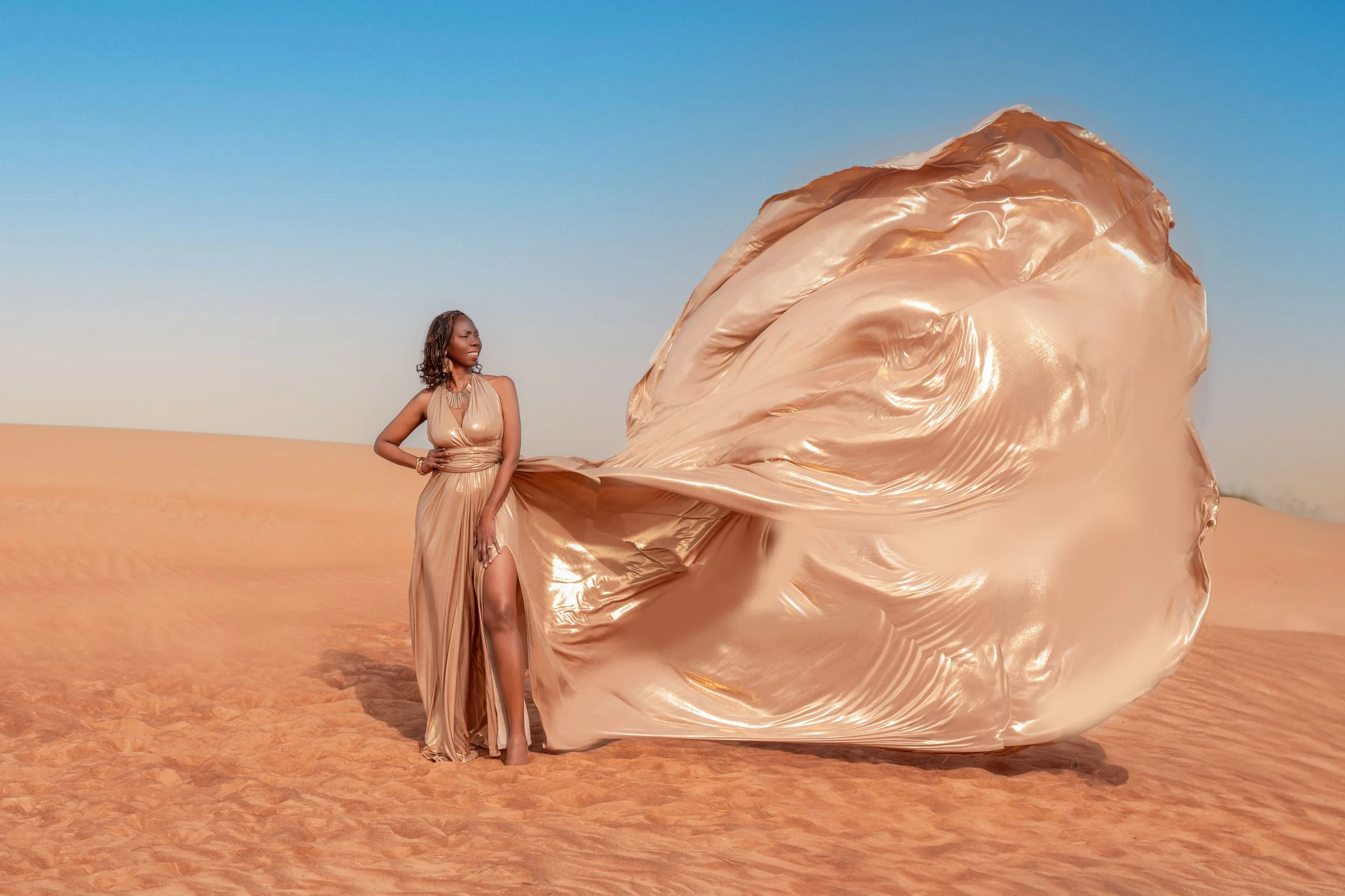 Imagine a burst of color dancing in the wind, set against the mesmerizing desert landscapes with you as the star. Our exclusive collection of flying dresses awakens the queen within you and has the power to transform you!
